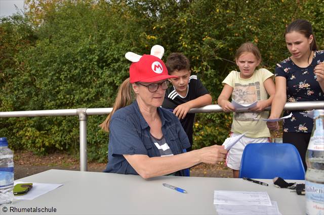 Frau Keller erleichterte den Schüler/innen mit ihrer modischen Kopfbedeckung die Orientierung.