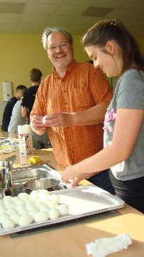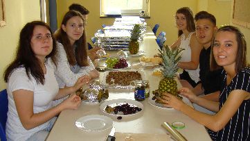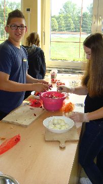 Wie es bei uns üblich ist, halfen die Schüler/innen der neunten Klassen in der Küche bei der Zubereitung des Essens.