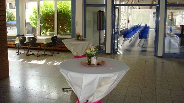 Unter der Leitung von Frau Flügge, mit tatkräftiger Unterstützung engagierter Lehrer/innen und Eltern und hervorragender Arbeit unserer Reinigungskräfte wurde die Schule für den erfreulichen Anlass herausgeputzt, geschmückt und ein sehr ansprechendes und reichhaltiges Buffet vorbereitet.