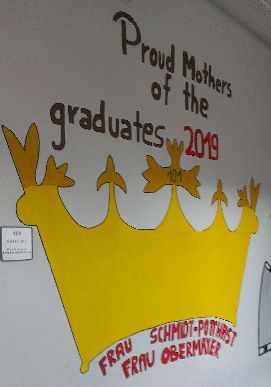 Unter fachkundiger Anleitung von Frau Wieland verewigten sich die Abgänger mit einem Wandkunstwerk im Obergeschoss und trugen somit dazu bei, dass unsere Schule noch mehr zu einem Ort wird, an dem Lehrer und Schüler gerne ihre Zeit verbringen, weil sie sich wohlfühlen.