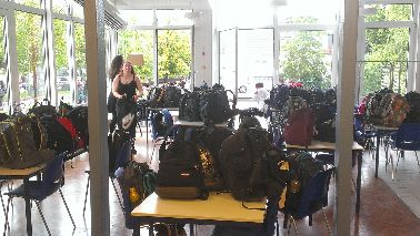 wurden die Taschen der jüngeren Schüler/innen von den Abgängern durch ein Fenster der Mensa in Sicherheit gebracht - sehr umsichtig!