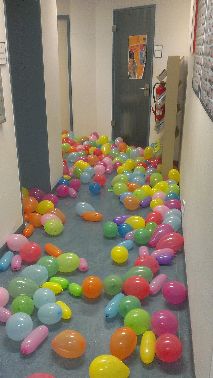 Auf dem Weg zum Lehrerzimmer knallte hin und wieder ein Luftballon.