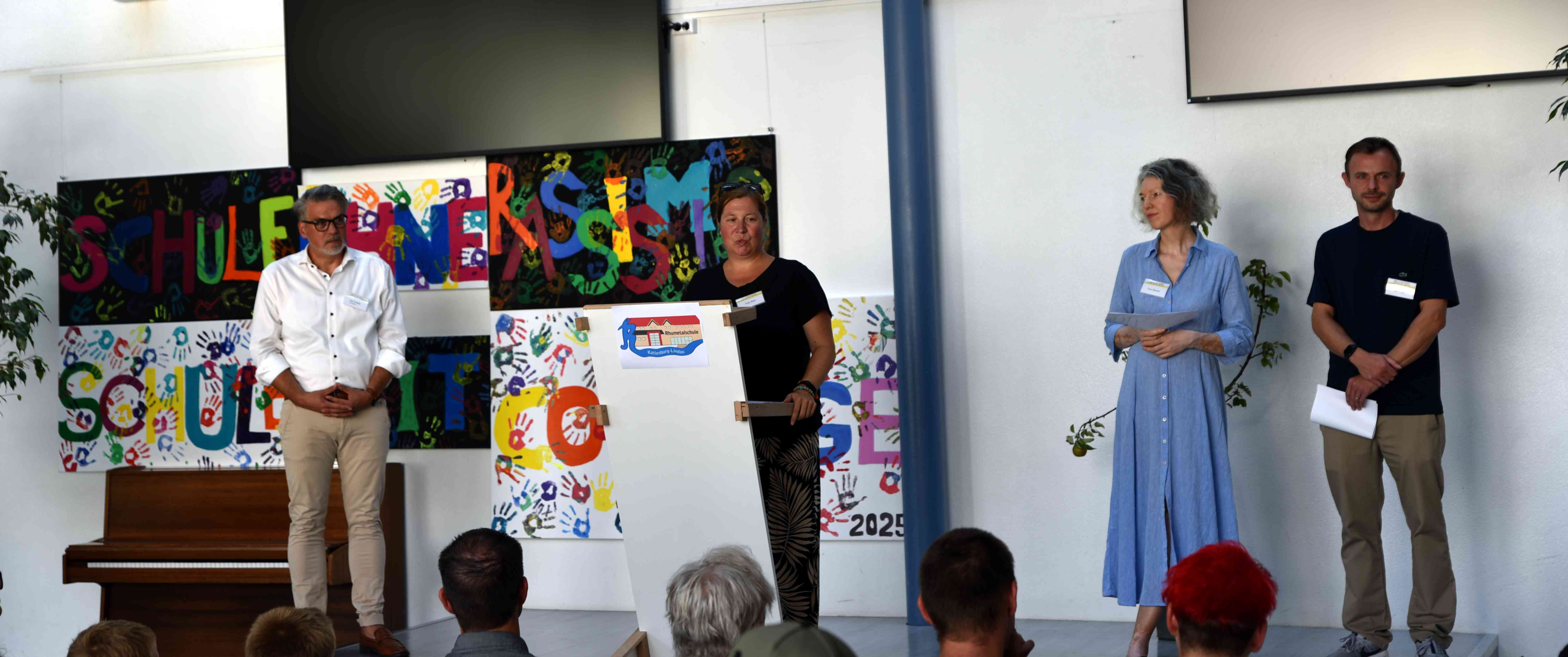 Frau Rien organisiert den Übergang von der Grundschule zur Rhumetalschule und stellte die Klassenleitungen vor: (v.l.) Frau Solveen und Herr Pajak. |
