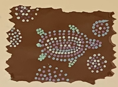 Projekt "Künste anderer Länder": Die Kinder entdeckten die faszinierenden Kunsttraditionen indigener Völker aus Australien, Neuseeland und Kanada. Sie wählten einen Kunststil aus, erforschten seine kulturelle Bedeutung, erforschten die Geschichte und Symbole der Kulturen, ließen sich davon inspirieren und gestalteten ihr eigenes Kunstwerk (l. Schildkröte mit DOT-painting Kunst der Aborigines, r. Neuseeland: Maori-Künste). |