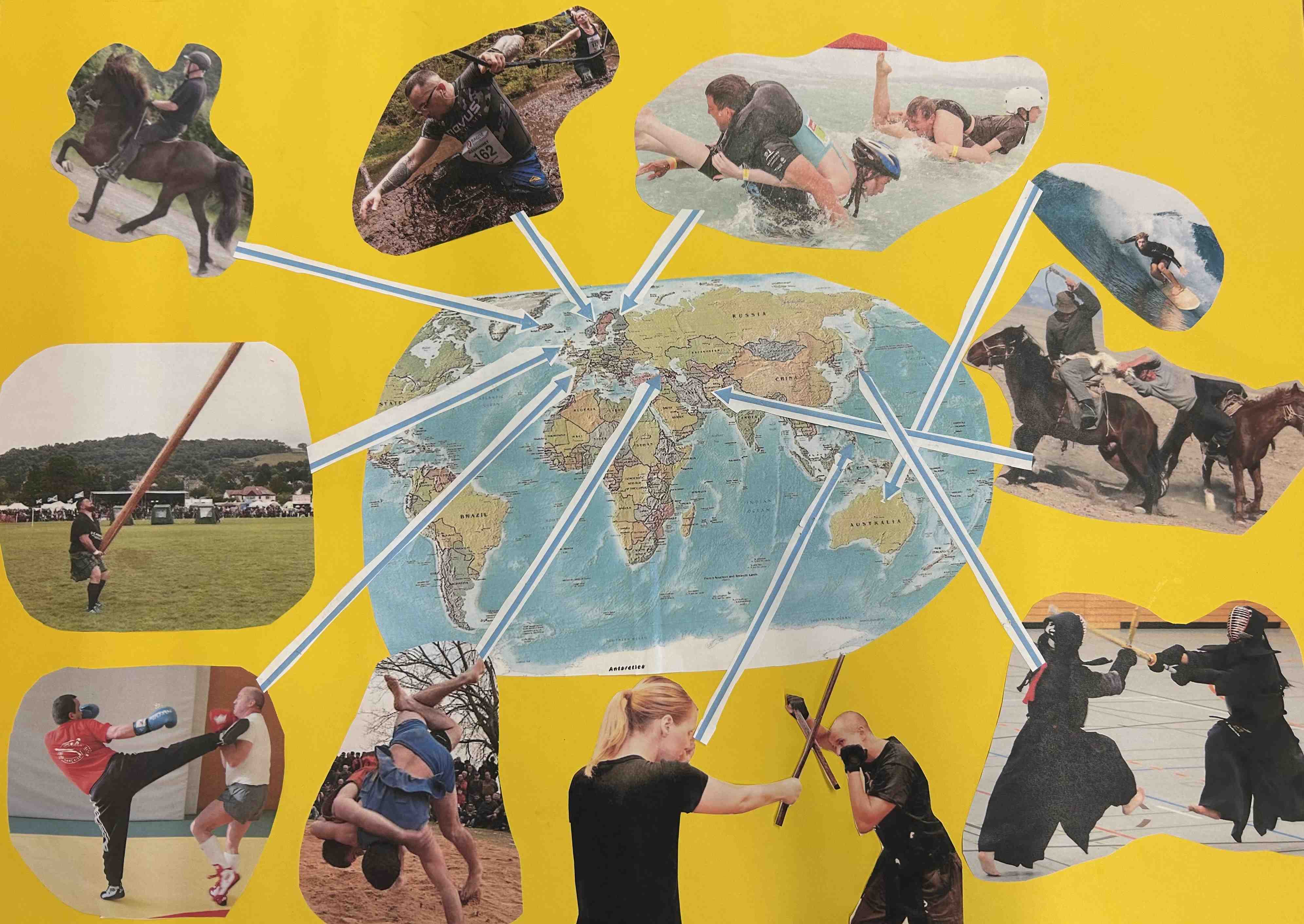 Projekt "Musik, Sport und Spiel - Eine Reise um die Welt": Hier wurden neue Kulturen kennengelernt, neue Klänge erlebt und unbekannte Sportarten ausprobiert. Im Vordergrund standen Fairness, Teamgeist und Spaß am Miteinander. Im Rollenspiel wurden Vorurteile abgebaut, Empathie entwickelt und ein besseres Verständnis für unterschiedliche Lebensweisen gewonnen (l. Sport aus aller Welt, r. Jeder Mensch ist unterschiedlich). |