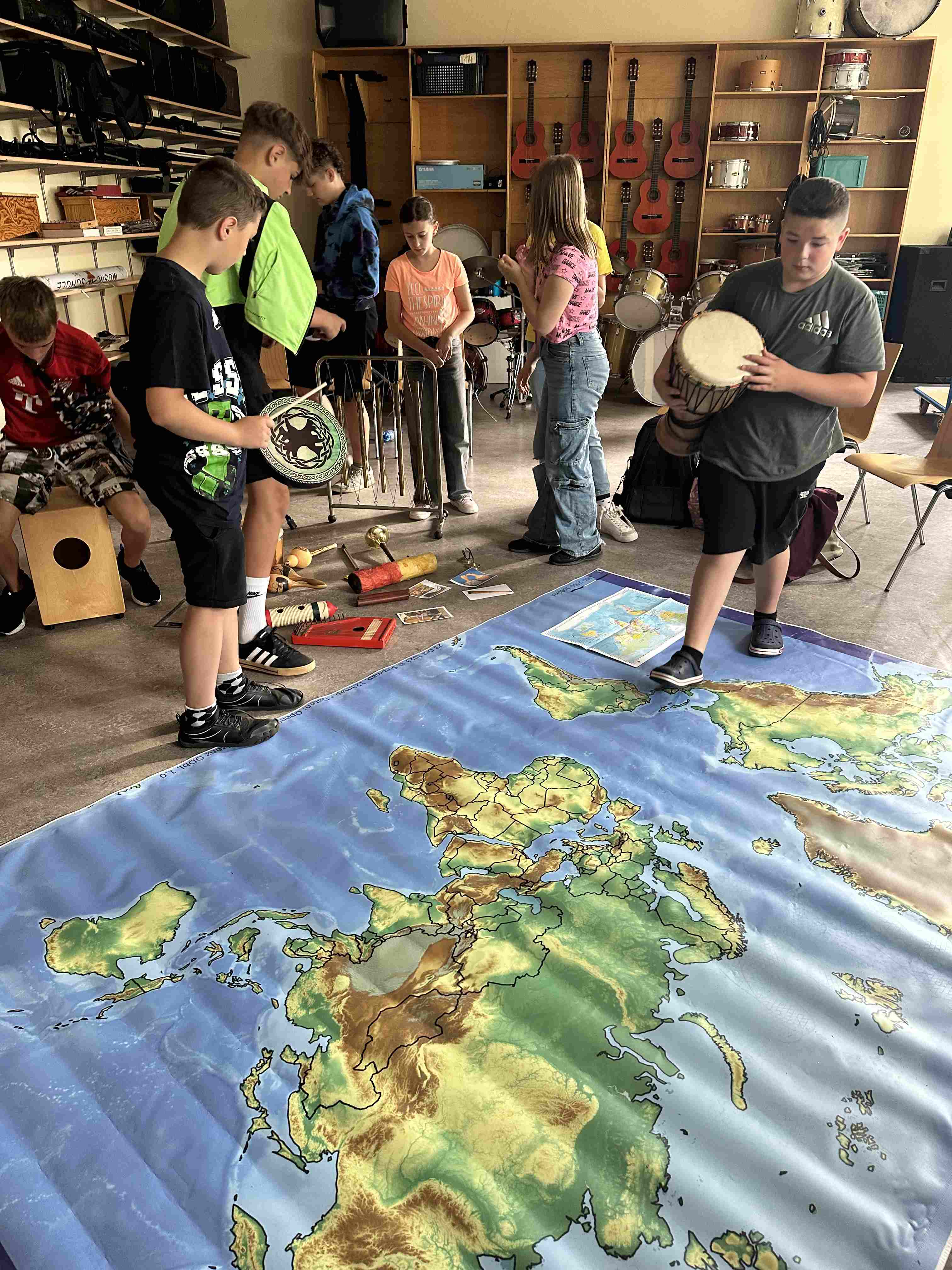Projekt "Musik verbindet": Die Teilnehmer*innen lernten Instrumente und Rhythmen aus verschiedenen Ländern kennen, spielten diese nach und schrieben gemeinsam ein Lied. (Fotos: Traditionelle und typische Musikinstrumente - Wir suchen das Herkunftsland). |